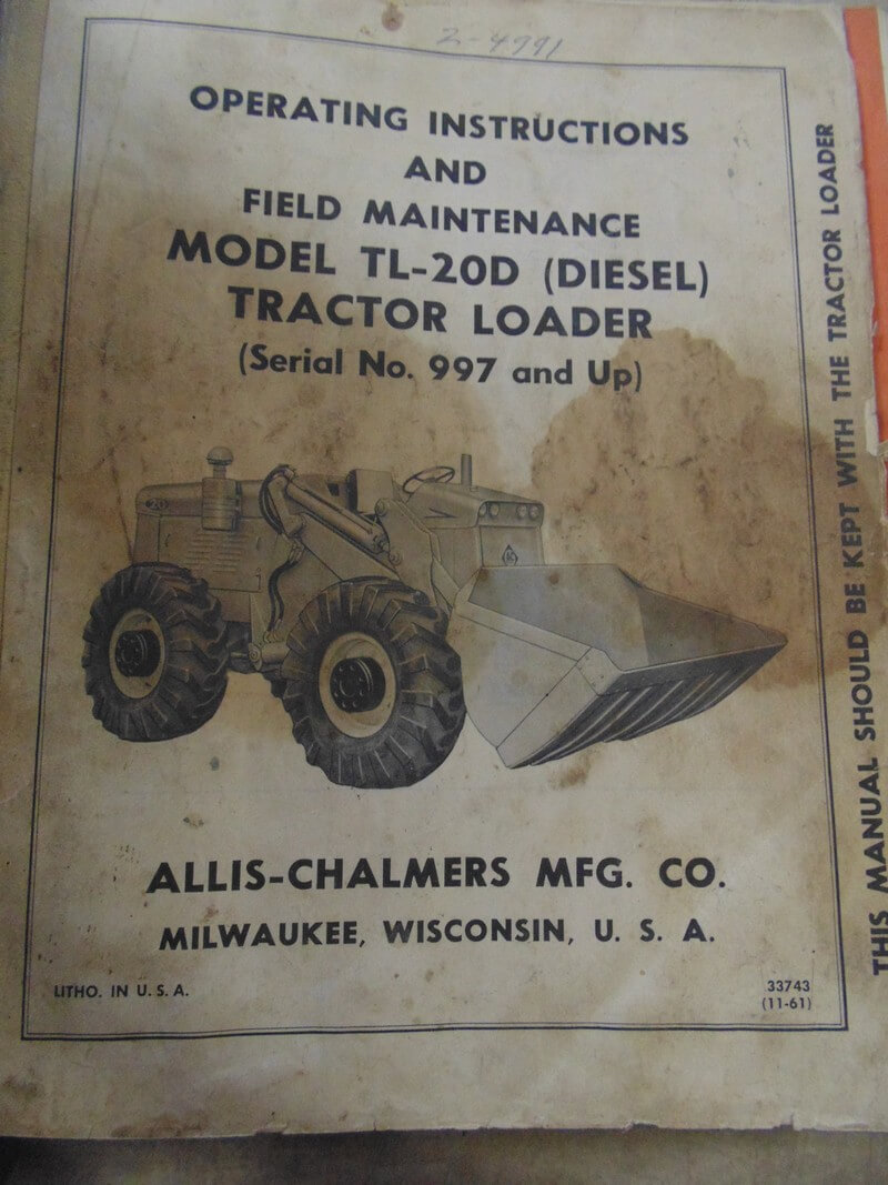 Allis Chalmers Model TL-20D (Diesel) Tractor Loader Operator and Parts Manual