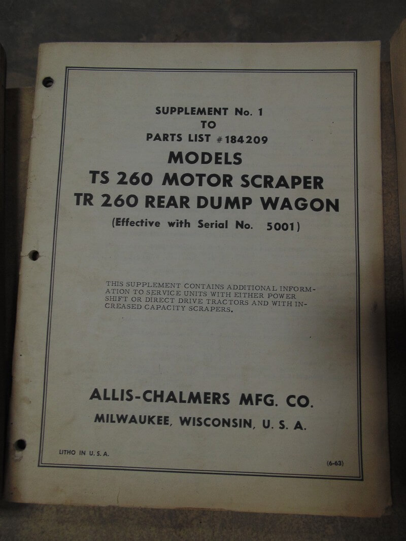 Allis Chalmers Models TS260 Motor Scraper, TR Rear Dump Wagon Parts Manual