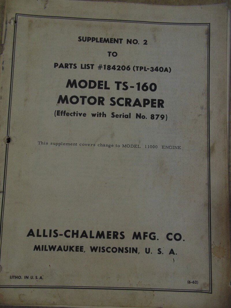 Allis Chalmers Supplement to Model TS-160 Motor Scraper