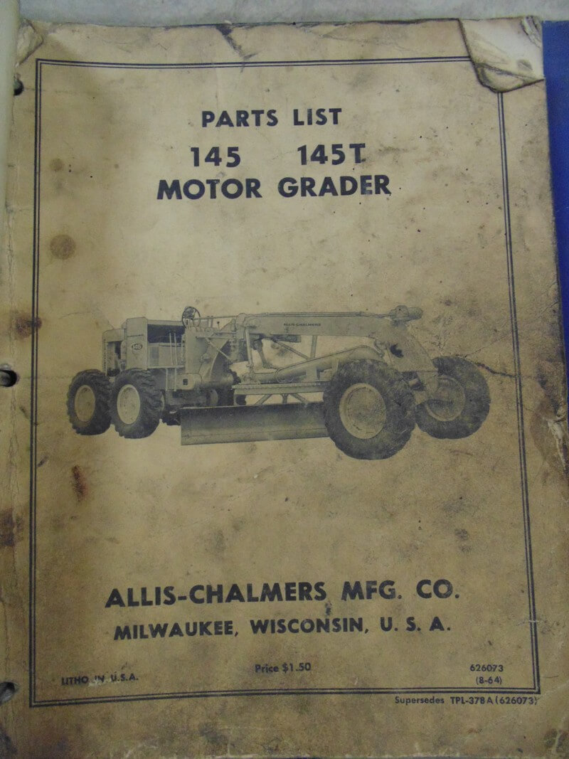Allis Chalmers Thompson Turbochargers for Model 7000 Engines 145 & 145T Motor Grader Parts Manual