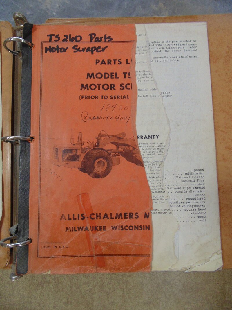 Allis Chalmers TS 260 Motor Scraper Parts Manual