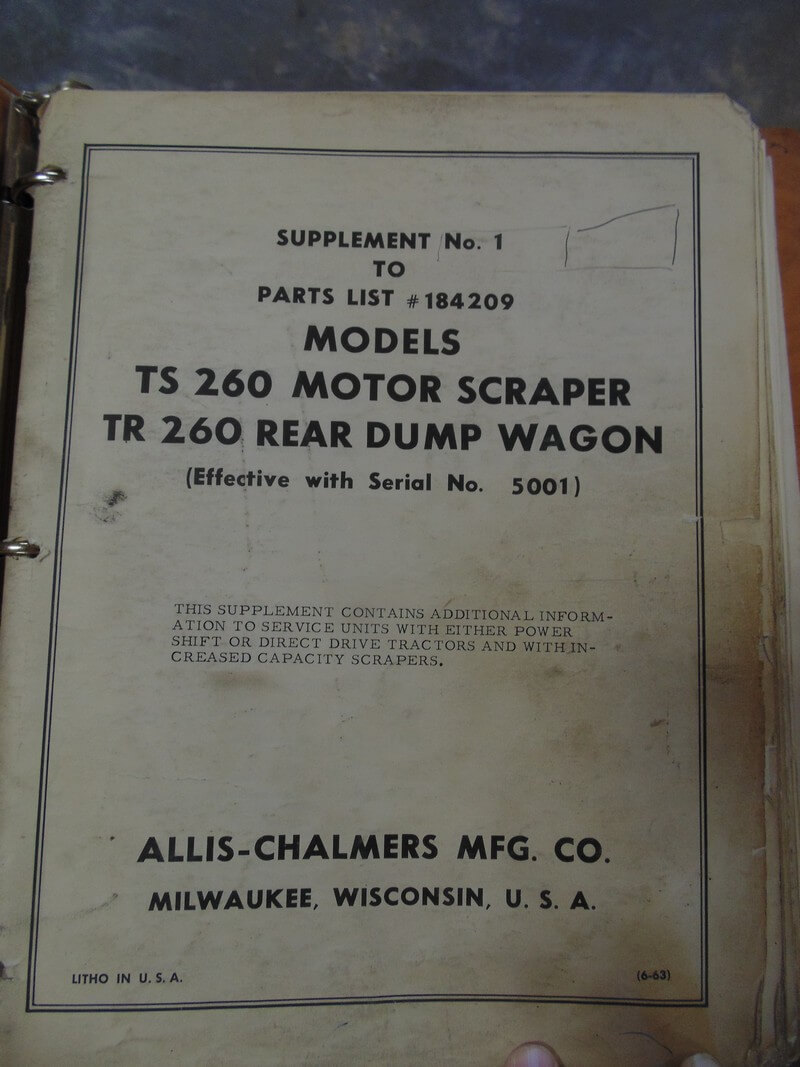 Allis Chalmers TS 260 Motor Scraper, TR 260 Rear Dump Wagon Parts Manual