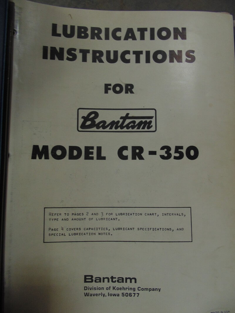 Bantam Lubrication Instructions for Model CR-350 Service Manual