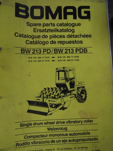 Bomag BW213PD BW213PDB Single Drum Wheel Drive Vibratory Roller Spare Parts Catalog
