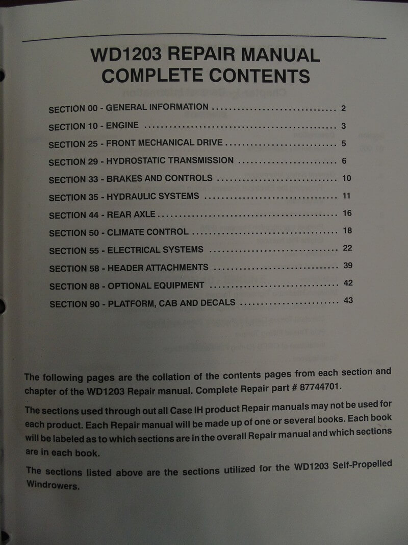 Case WD 1203 Self Propelled Windrower Repair Manual