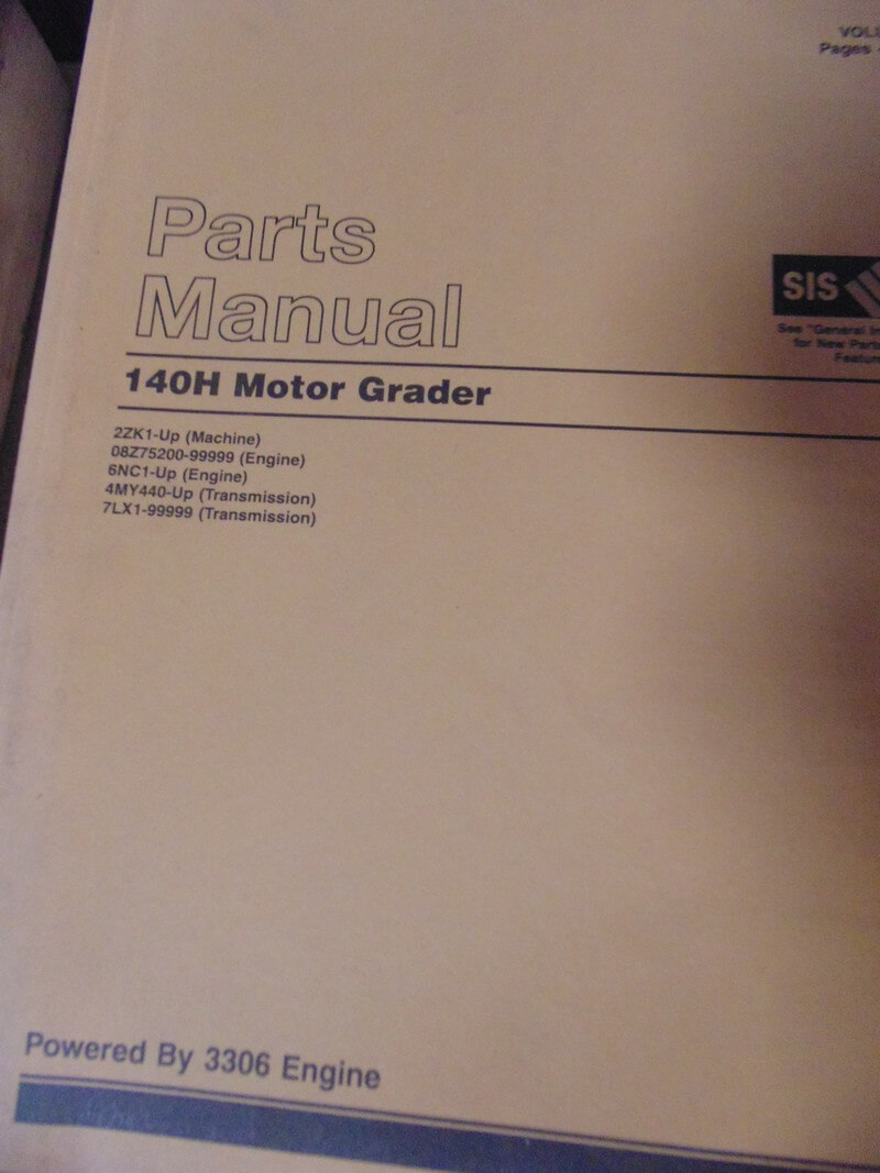 Caterpillar 140H Motor Grader 2ZK1 Vol. 2 & 3, Power Train, Frame & Body, Brakes System, Hydraulic System, Implements, Operating System Parts Manual