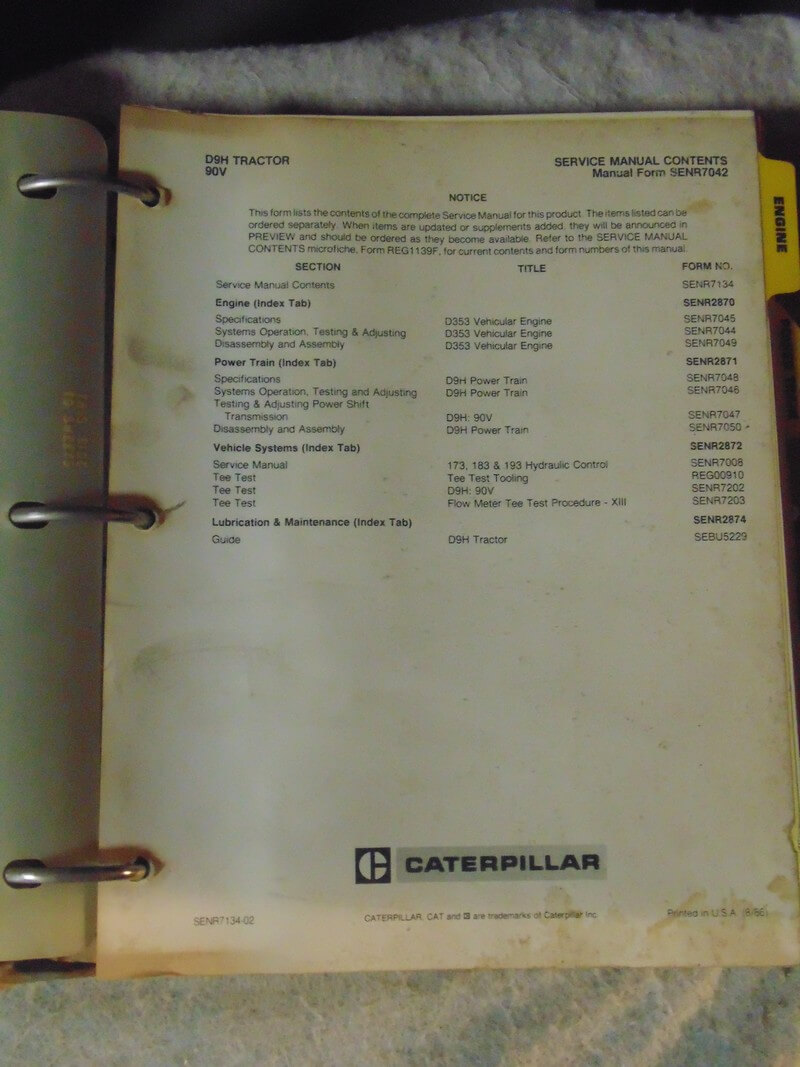 Caterpillar D9H Tractor 90V Service Manual