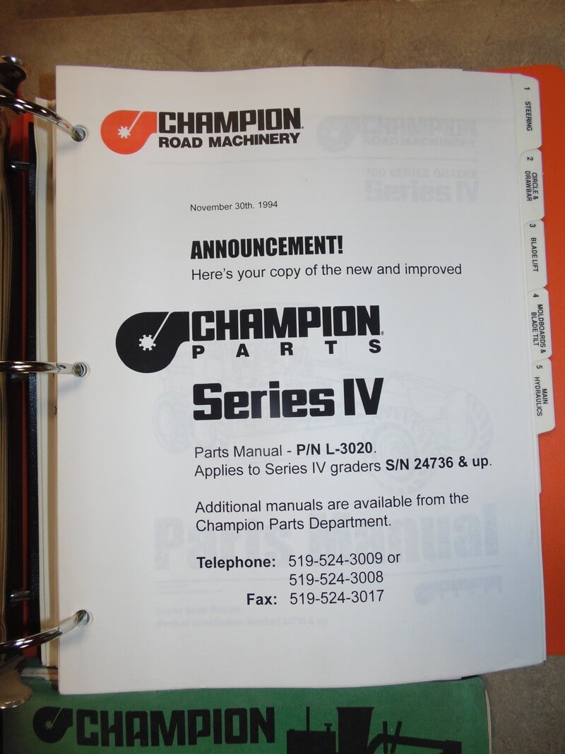 Champion 700 Series 4 Motor Grader Parts Manual