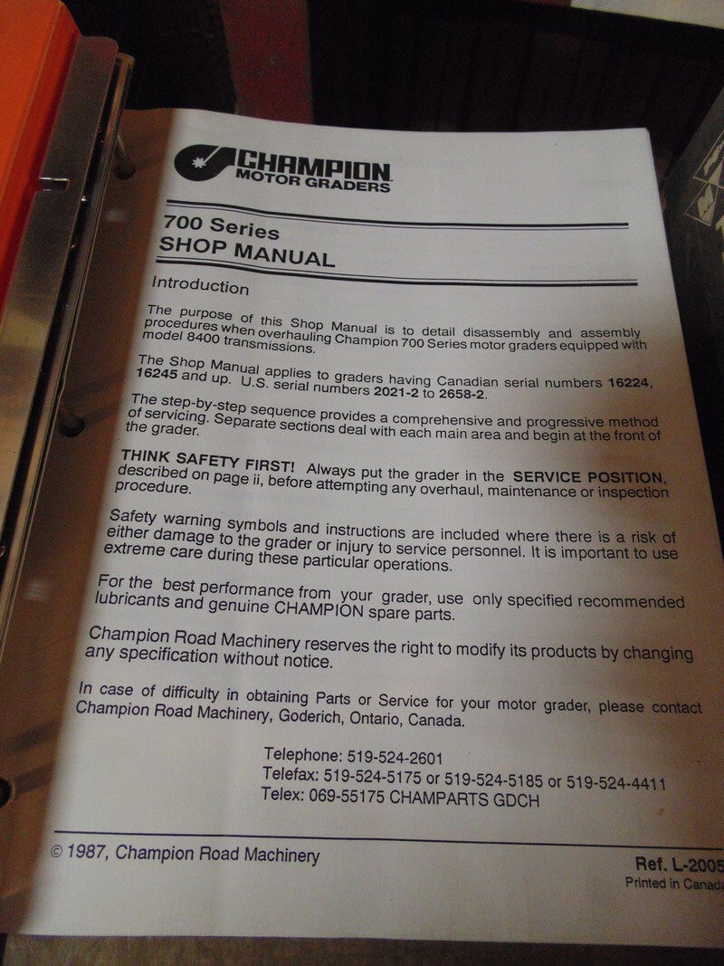 Champion 700 Series Motor Graders Service Repair Manual