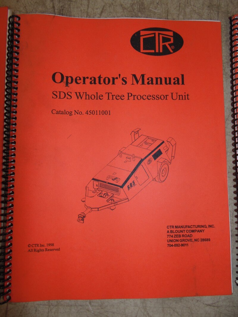 CTR SDS Whole Tree Processor Unit Operator Manual quantity