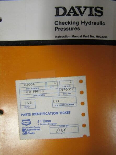 Davis Checking Hydraulic Pressures Instruction Manual H003004