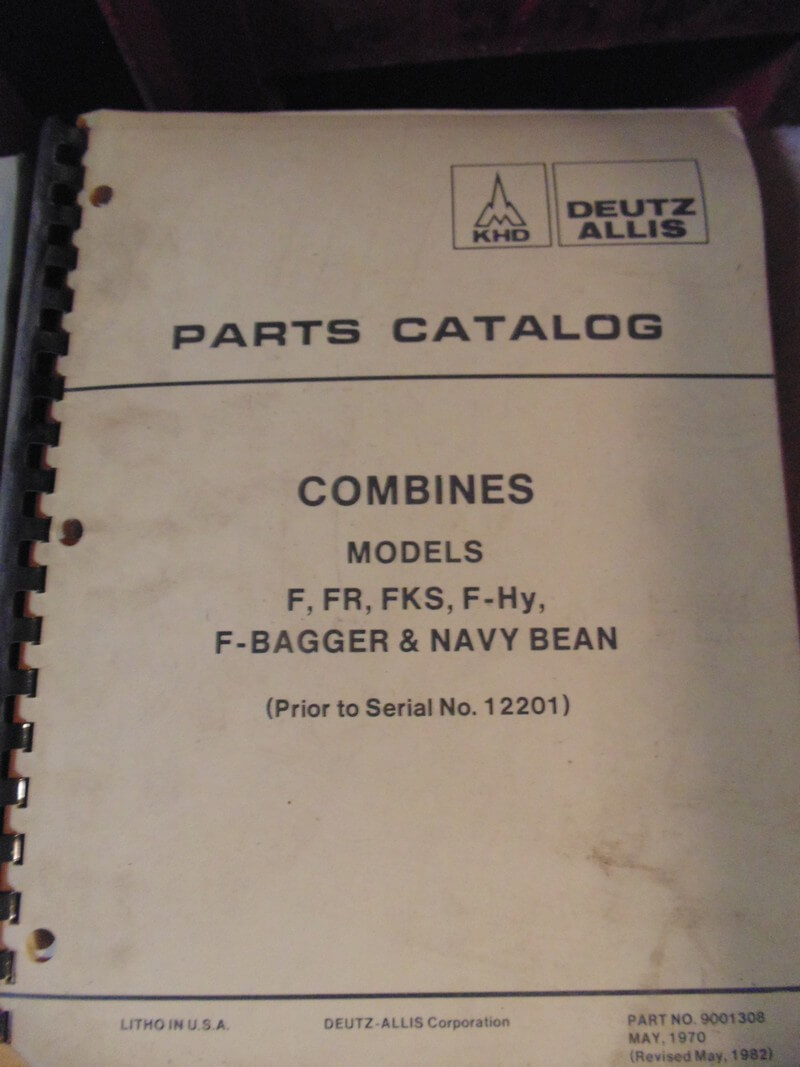 Deutz Allis Models F, F-Hy, FR, F-bagger, FKS, Navy Bean, Combine Parts Manual