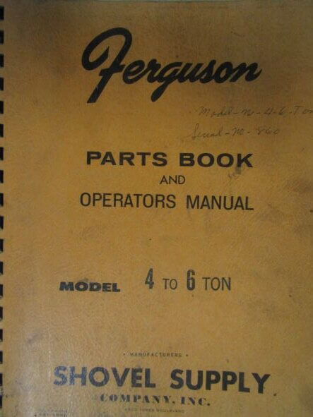 Ferguson Model 4 to 6 Ton Shovel Crane Parts Book and Operators Manual