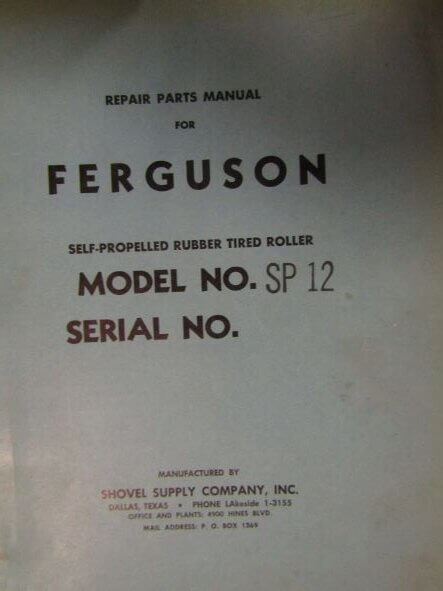 Ferguson Model SP12 Self-Propelled Rubber Tired Roller Repair Parts Manual
