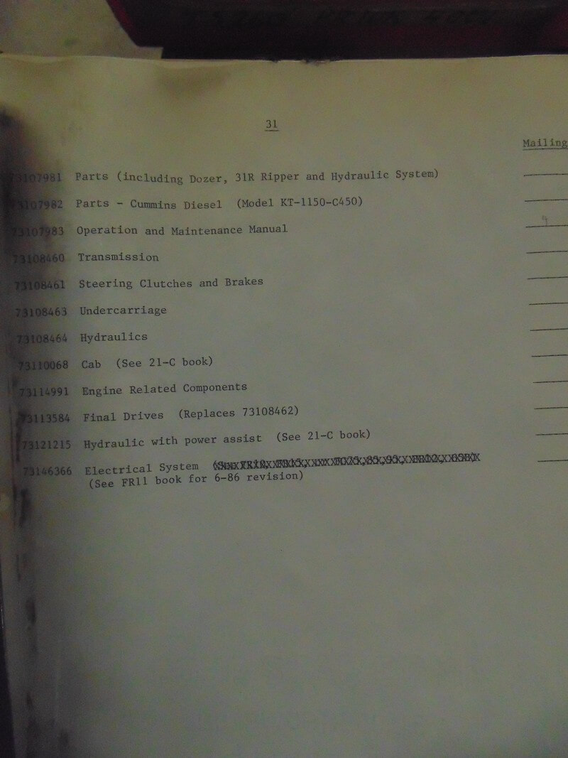 - Parts- (Including dozer, 31R ripper and hydraulic system)