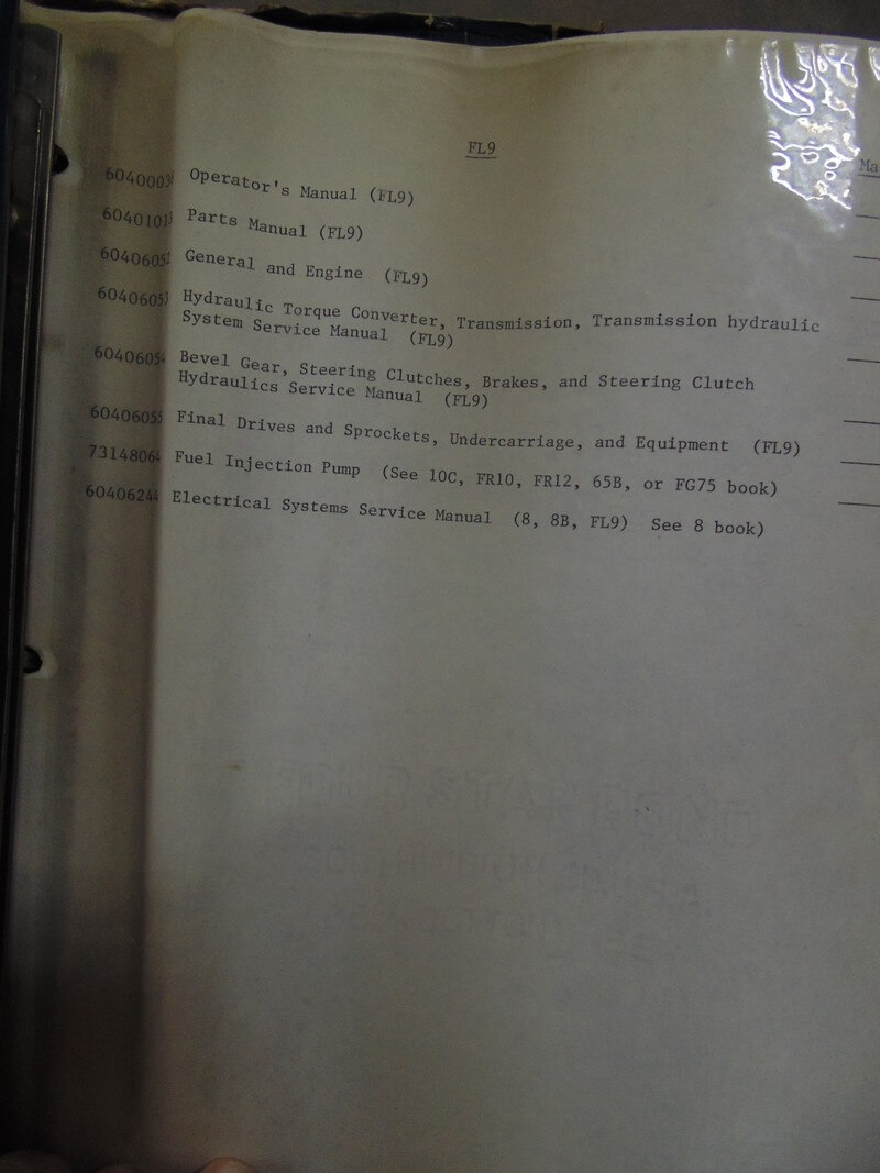 Fiat Allis FL9 Crawler Dozer Service Manual
