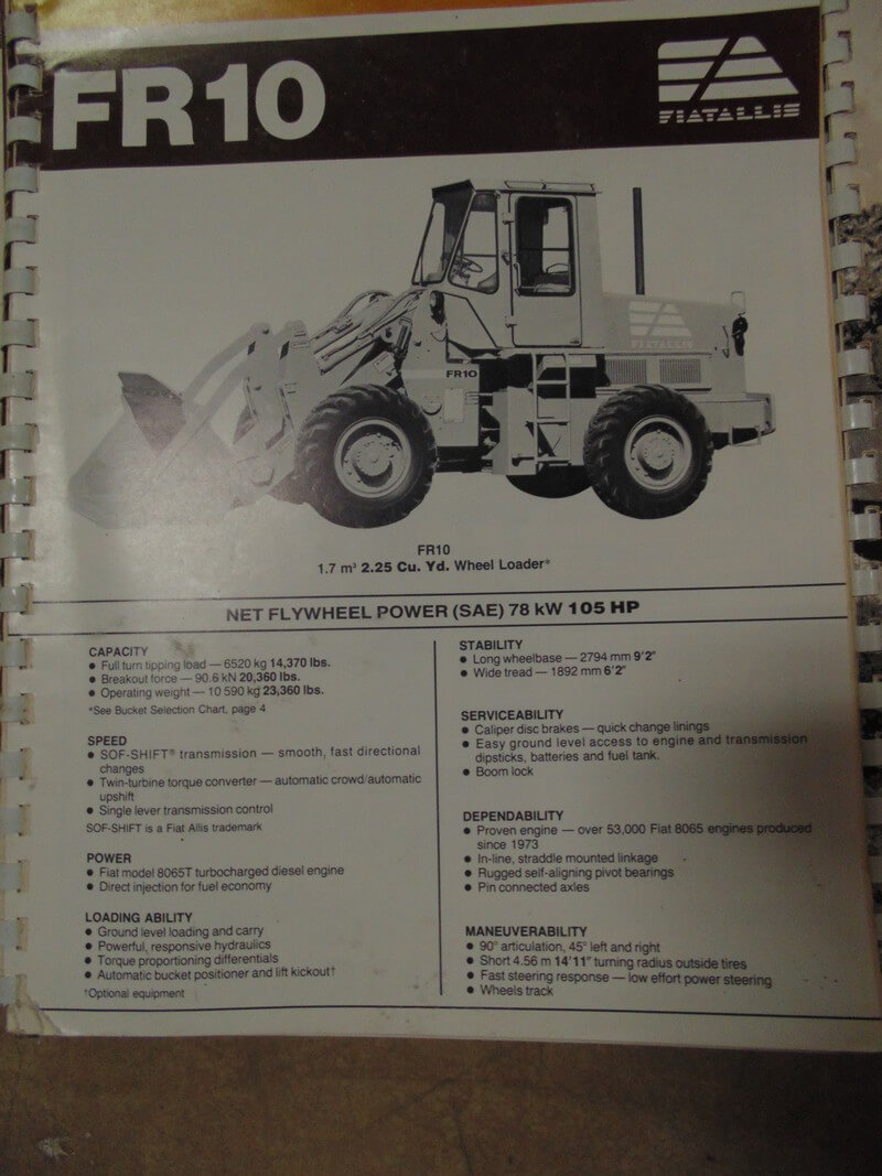 Fiat Allis FR10 Wheel Loader Product Sales Information Manual