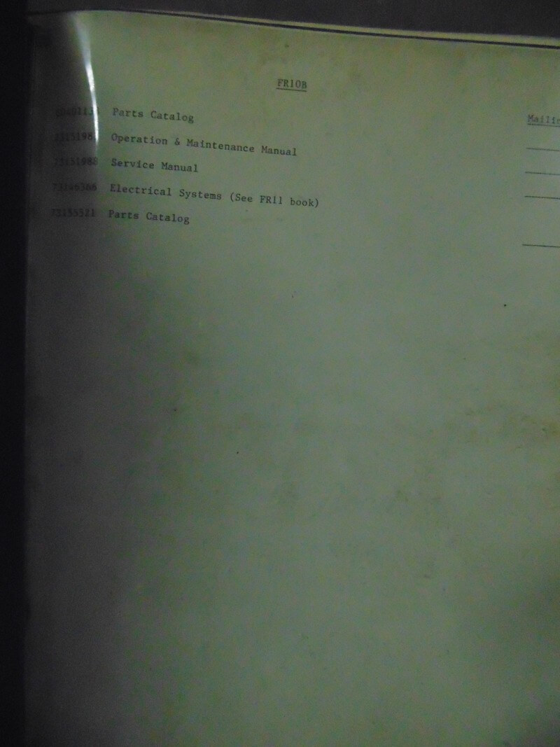 Fiat Allis FR10B Wheel Loader Parts, Operation, and Service Set