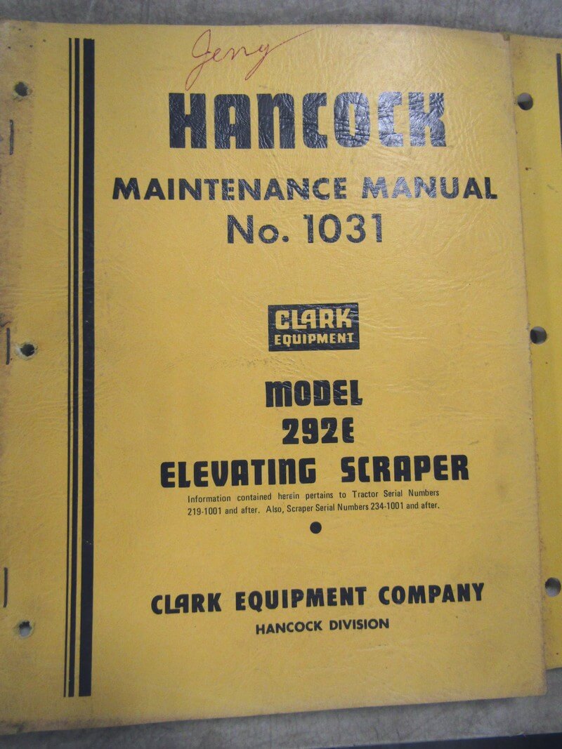 Hancock 292E Elevating Scraper Maintenance Manual 1031
