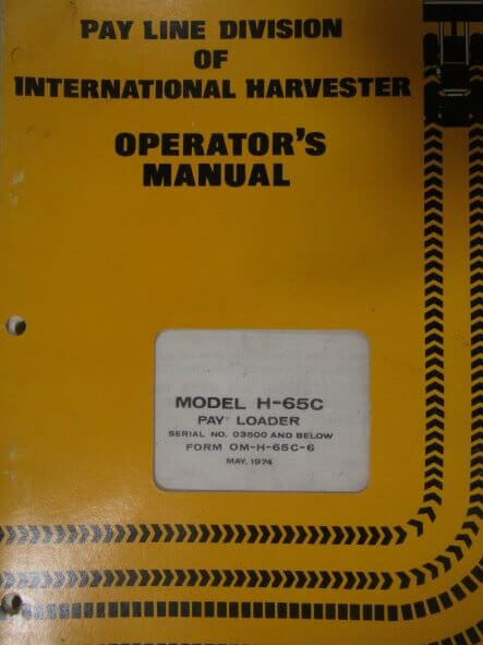 International Harvester Pay Line Division Model H65C Pay Loader Operators Manual