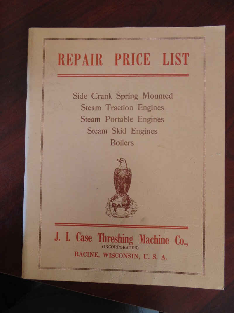 J.I. Case Threshing Machine CO. Repair Price List- Side Crank Spring Mounted, Steam Traction Engines, Steam Portable Engines, Steam Skid Engines, Boilers