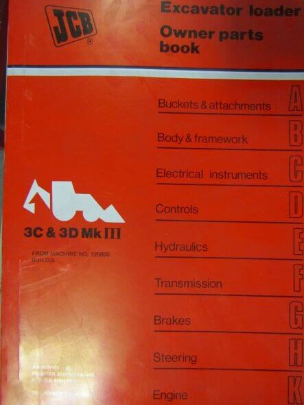 JCB 3C and 3D Mk III Excavator Loader Owner Parts Book 125000