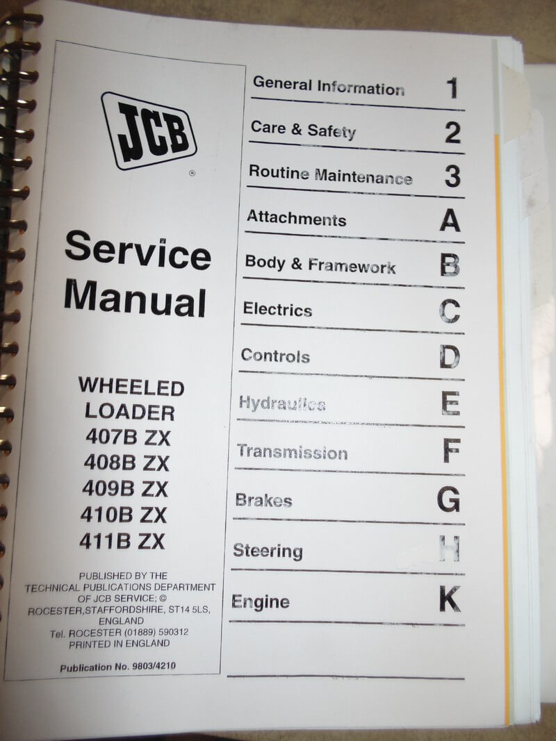 JCB 407B, 408B, 409B, 410B, 411B Wheeled Loader Service Manual