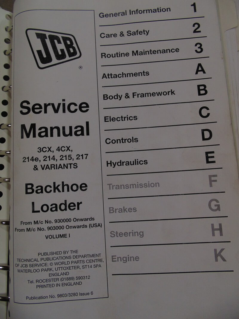JCB 3CX, 4CX, 214e, 214, 215, 217 & Variants Backhoe Loader Service Manual