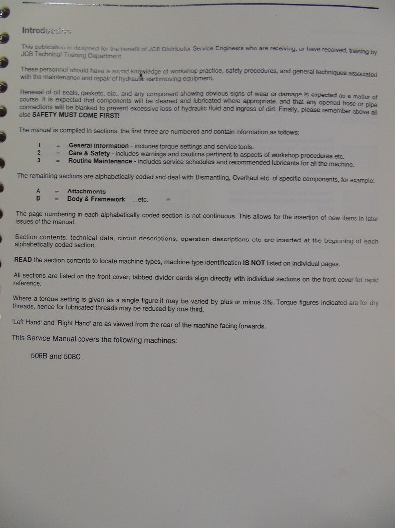 JCB 506B 508C Loadall Service Manual