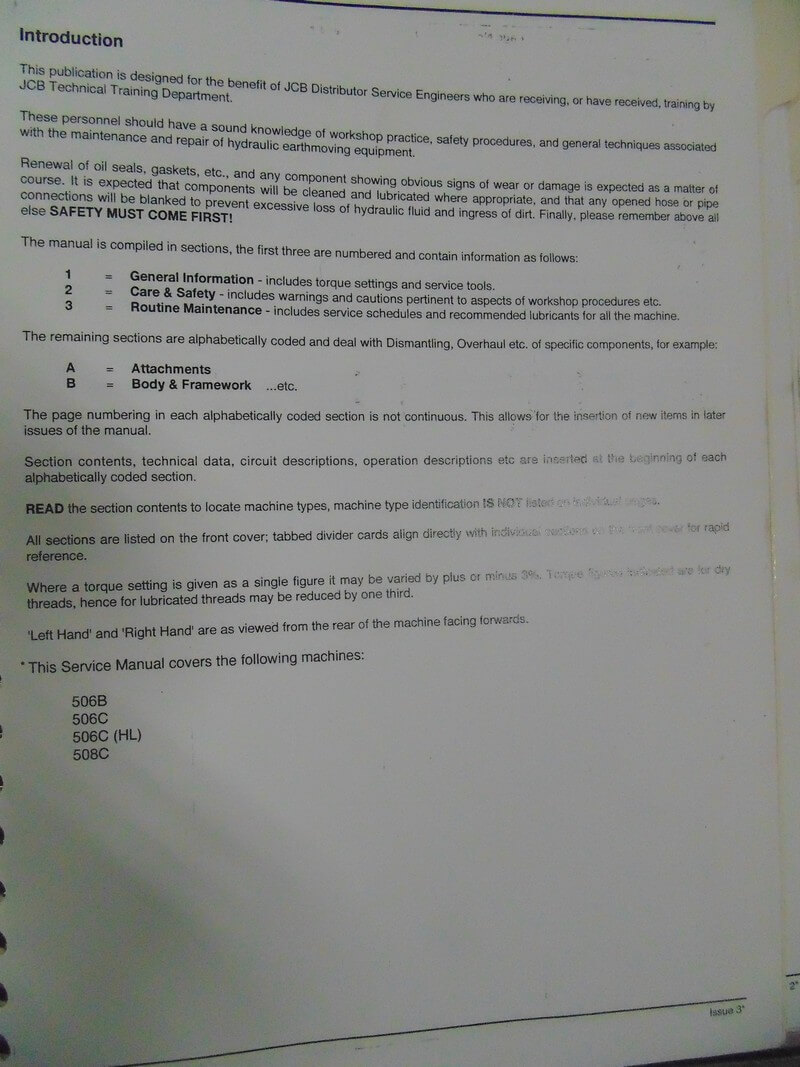 JCB 506B 506C 506C (H) 508C Loadall Service Manual