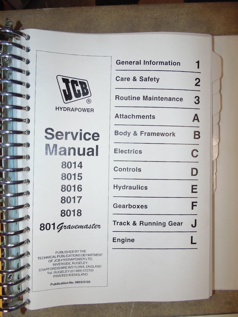 JCB 8014 8015 8016 801, 8018 801 Gravemaster Mini Excavator Service Manual