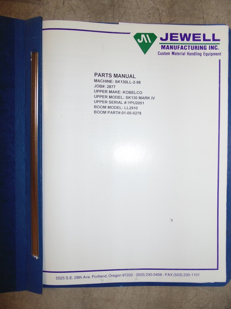 Jewell SK130LL-2-98 Kobelco Parts Manual