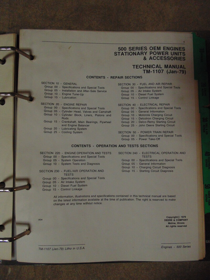 John Deere 500 Series EOM Engines Stationary Power Units & Accessories Technical Manual
