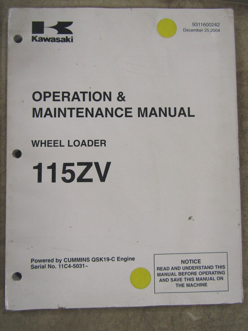 Kawasaki 115ZV Wheel Loader Operation and Maintenance Manual