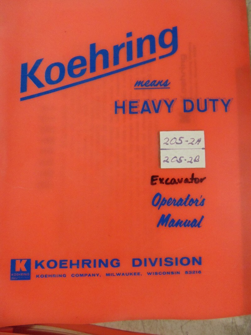 Koehring 205-2A, 205-2B Excavator Operator Manual