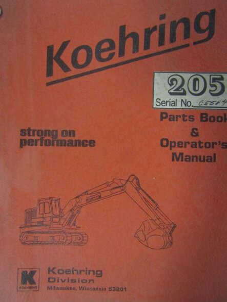 Koehring 205 Excavator Parts Book and Operators Manual