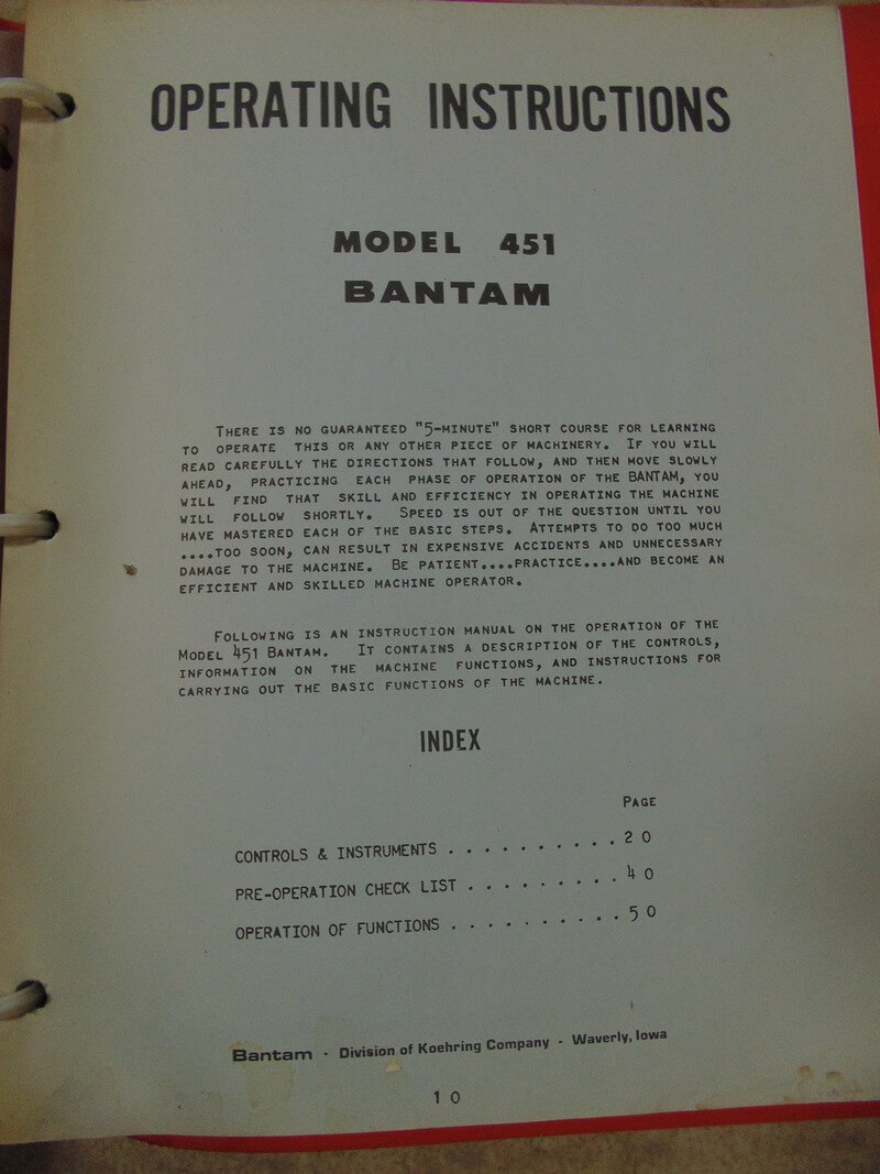 Koehring 451 Series Excavator Operator Manual quantity