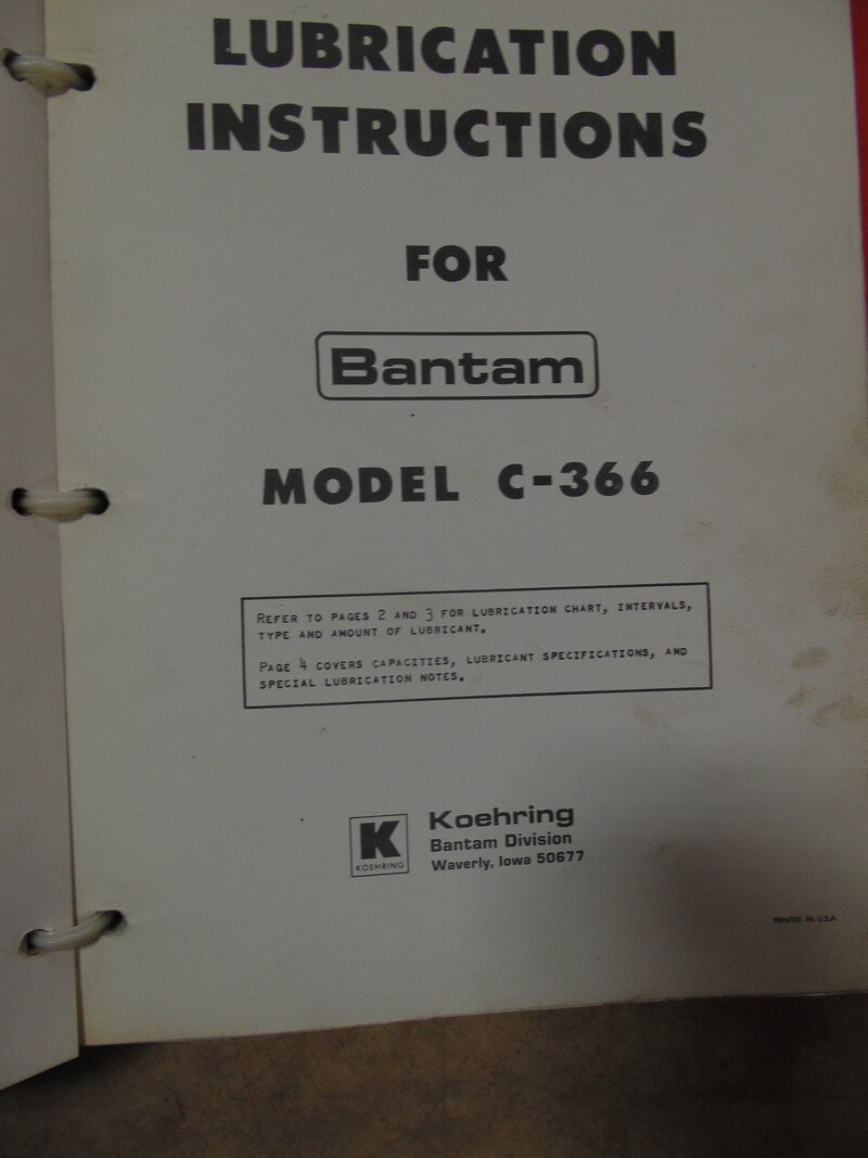 Koehring Bantam C-366 Lubrication Instructions Manual
