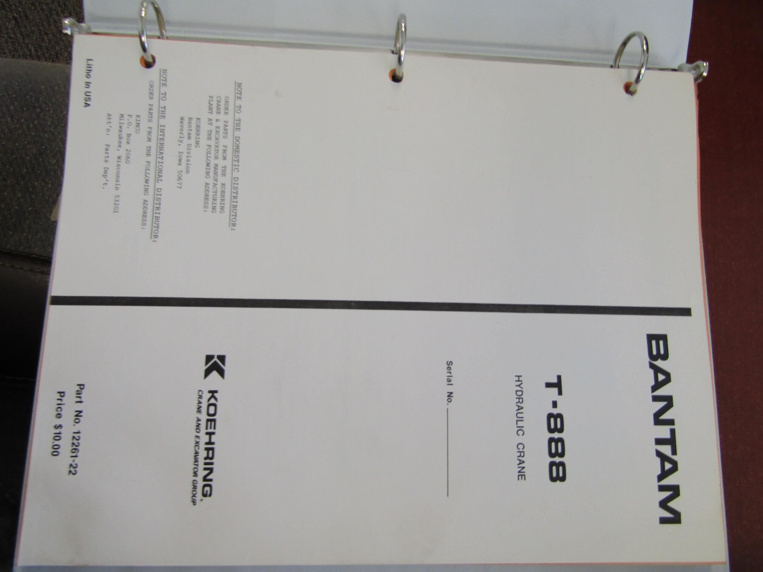 Koehring Bantam T888 Hydraulic Crane Parts Manual