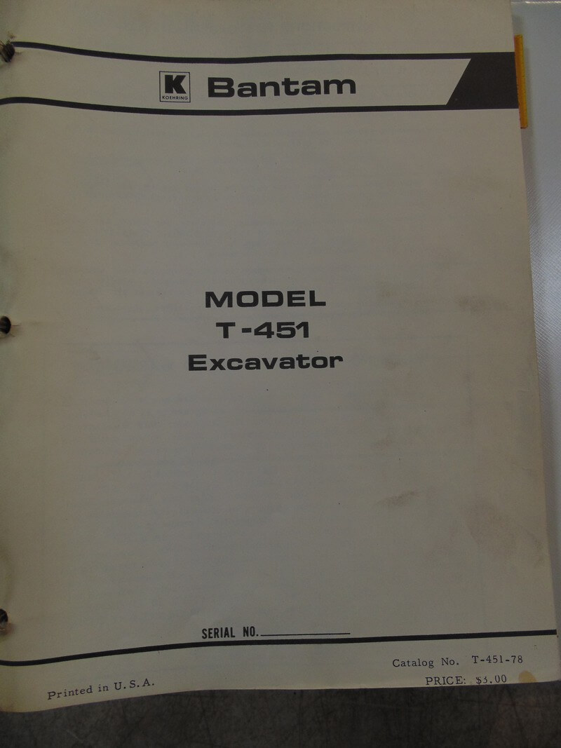Koehring T451 Excavator Parts & Operations Manual quantity