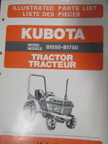 Kubota B1550 B1750 Tractor Parts List