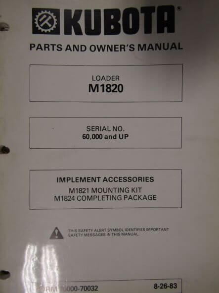 Kubota M1820 Loader Parts and Owners Manual