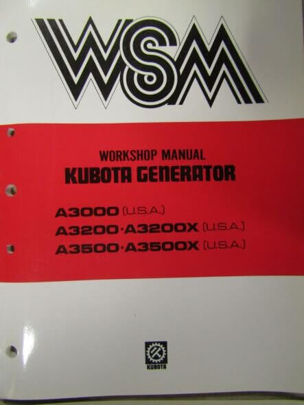 Kubota Model A3000 A3200 A3200X A3500 A3500X Generator Workshop Manual
