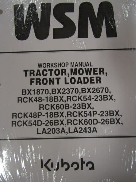 Kubota Model BX1870 BX2370 BX2670 RCK4818BX RCK5423BX RCK60B23BX RCK48P18BX RCK54P23BX RCK54D26BX RCK60D26BX LA203A LA243A Tractor Mower Front Loader Workshop Service Repair Manual