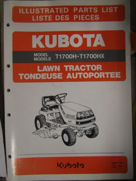 Kubota Model T1700H T1700HX Lawn Tractor Illustrated Parts List