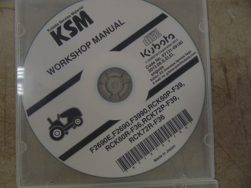 Kubota F2690E, F2690, F3990, RCK60P-F39, RCK60R-F36, RCK72P-F39, RCK 72R-F36 Workshop Manual on CD