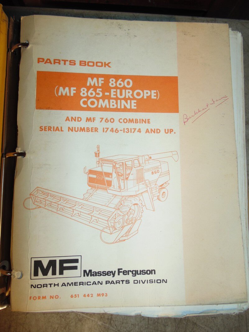 Massey Ferguson MF860 (MF865- Europe Combine) and MF760 Combine Parts Manual