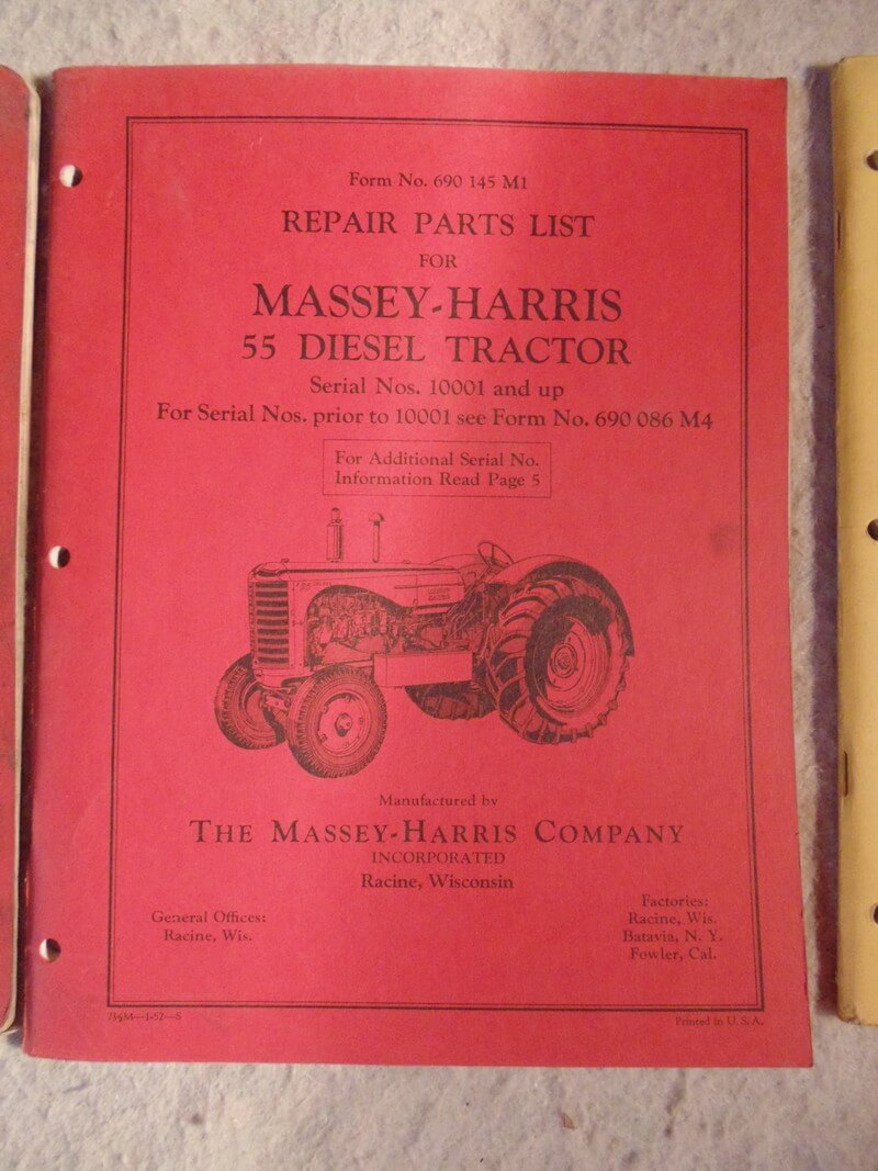 Massey Harris Antique 55 Diesel Tractor Parts Manual