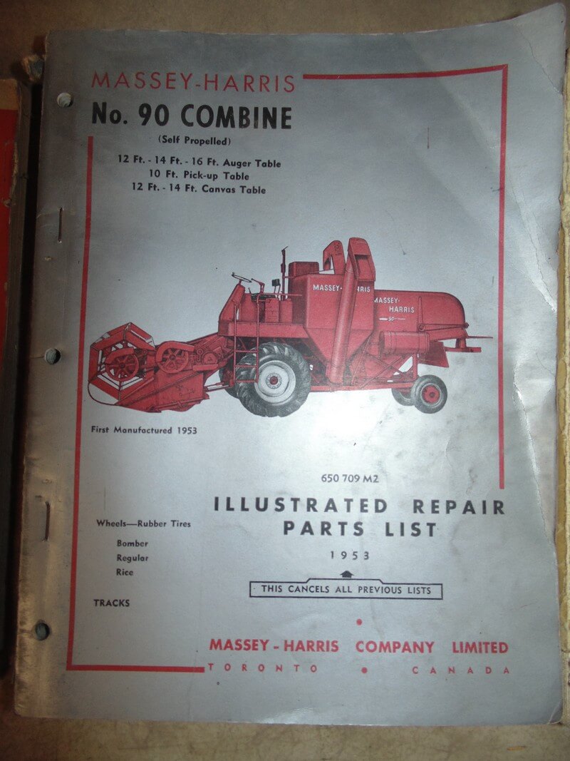 Massey Harris No. 90 Combine Self Propelled 12′, 14′, 16′ Auger Table; 10′ Pickup Table; 12′, 14′ Canvas Table Parts Manual