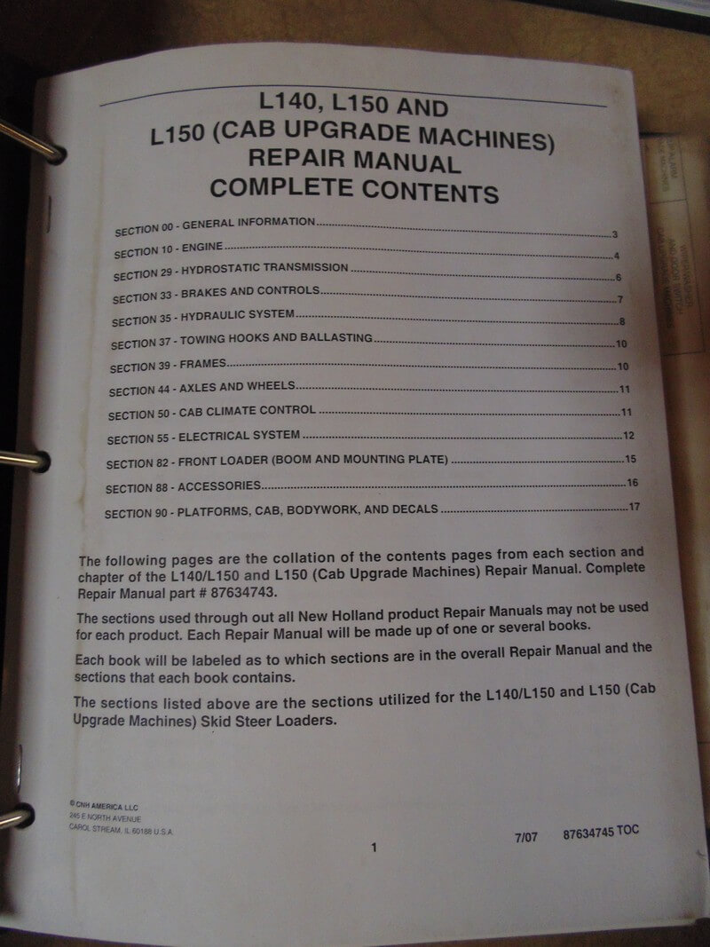 New Holland L140, L150, & L150 (cab upgrade machines) Repair Manual